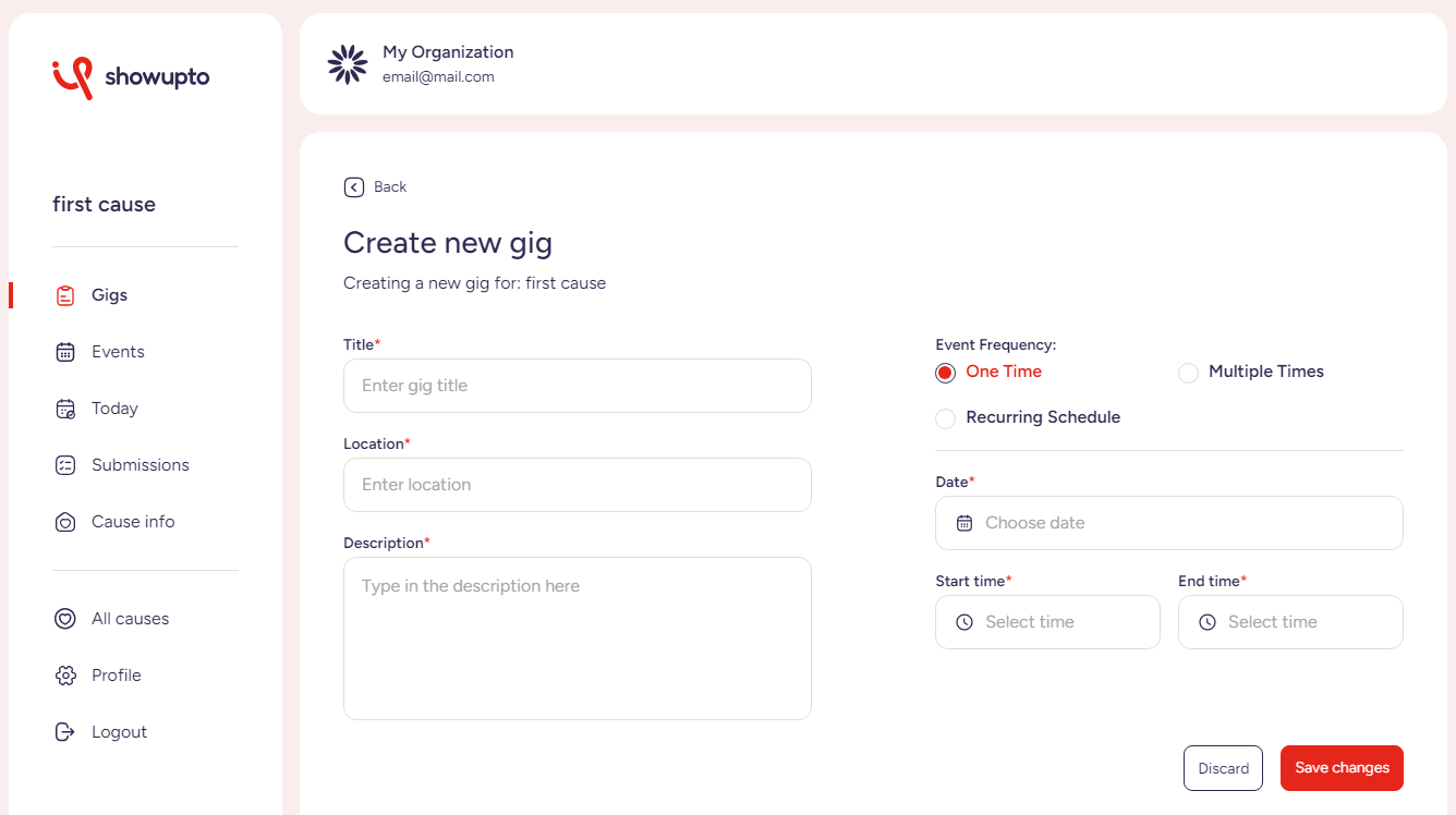 Give details, set expectations, and create gigs as one-time or recurring events.